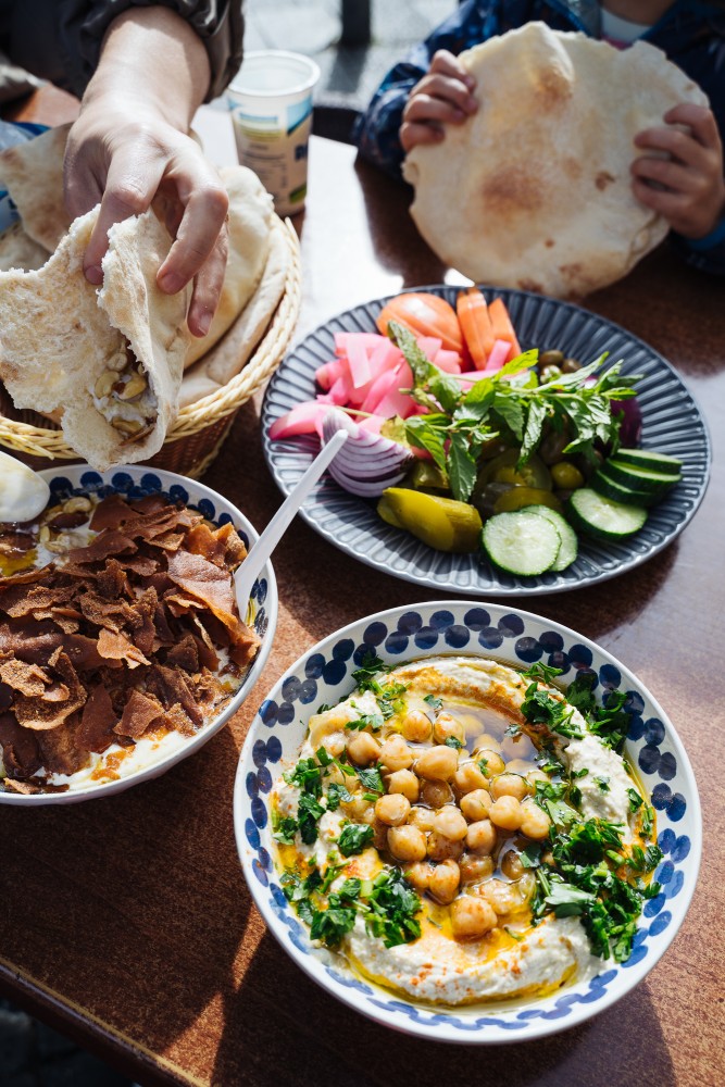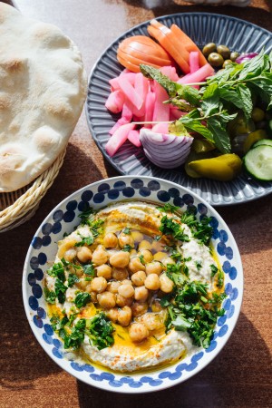 Get the Z'atar Manakish flatbread and the Musabaha