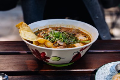 Get an order of the crispy pork belly starter just for yourself if you're going in a group. You won't want to share. And then, finish yourself off with a Tom Yum soup.