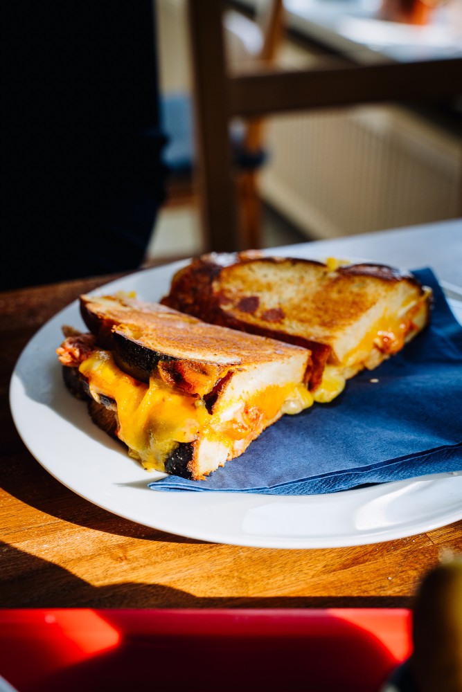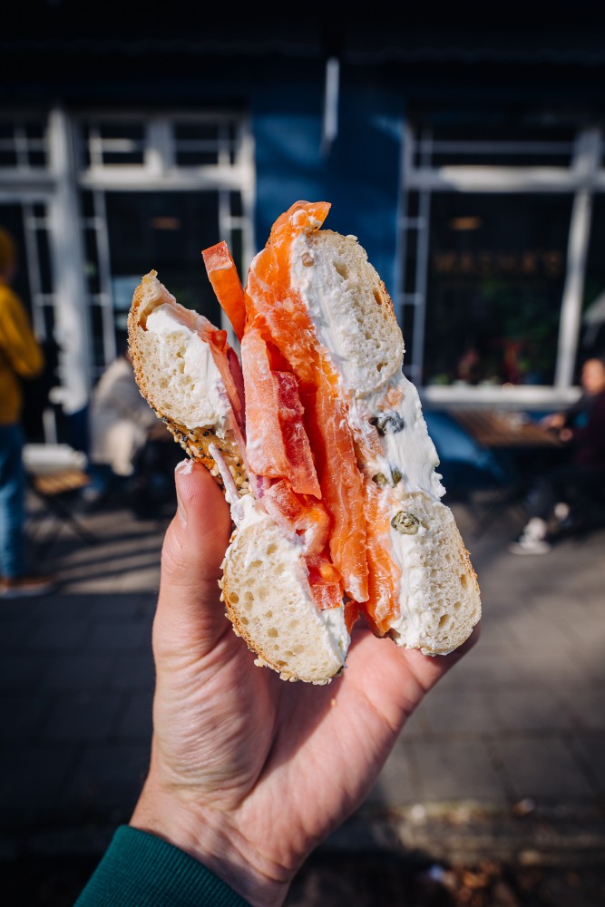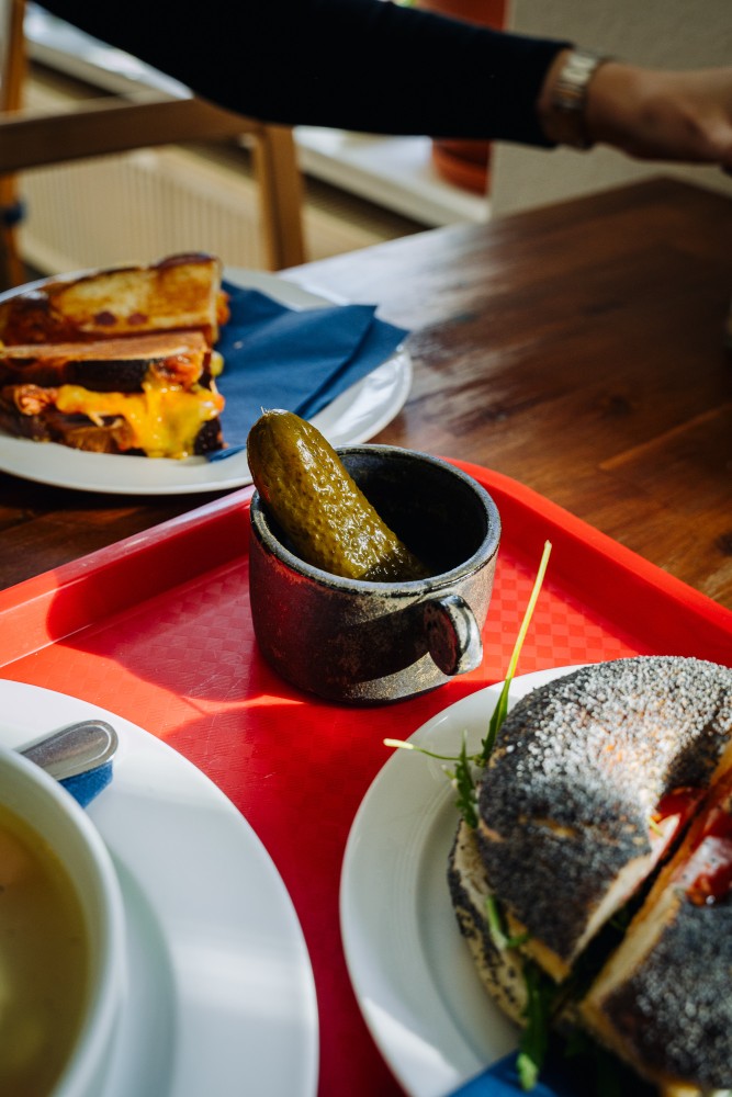 Masha's Bagels is a Berlin-based Jewish deli and bagel shop in Neukölln specializing in traditional New York-style bagels made from scratch. Their bagels are hand-rolled, boiled and baked in a stone oven, ensuring a bagel experience of the highest level. They offer a variety of classic and modern bagel sandwiches, such as NYC salmon with cream cheese and the BEC (Bacon, Egg & Cheese) but one should not neglect their sandwiches, where the Kimchi Grilled Cheese stands out. Another dish to ortder is the extraordinary Matzo Ball Soup. Masha's also serves great coffee and homemade baked goods, including cheesecakes and rugelach. The cozy atmosphere and friendly service make it a popular spot for breakfast, lunch, or a quick snack.