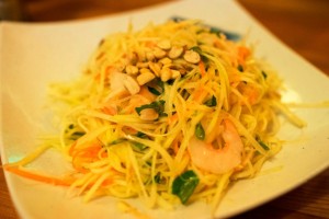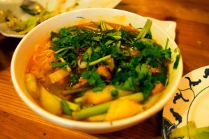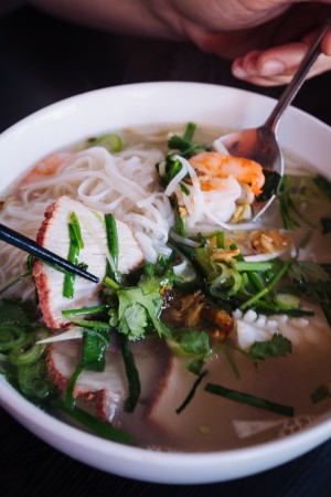 Now this is just your starter, get ready for some real action with your next choices. I would definitely get the glass noodle or papaya salad as a second starter, both very good, large portions though so share them. Then you should start eyeballing some of the main dishes, for example one of the ridiculously delicious soups like the Phos, Seafood Hui Tieu or Udon (my Vietnamese sources tell me these are THE city's most authentic soups, just saying). From the chalk board menu you can often order the fantastic Bo La Lot (leaf-wrapped beef) or Chao Tom (grilled shrimppaste wrapped around sugar cane). If you really want to "splurge" with a group, you order one of the massive Vietnamese hot pots where you cook your own meat in the broth. And then, just to top all of this, Bhan Xeo might also just be the best Asian vegan restaurant in town because they are serving crazy good fake duck and fish dishes which are ridiculously similar to the real deal. My vegan friends were convinced the staff made a mistake by serving them real duck. That's how crazy well this tofu is done, it even has a crispy skin and everything and it's very, very good.