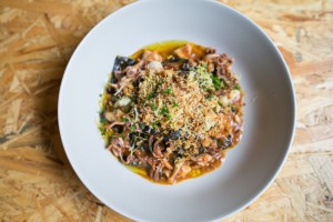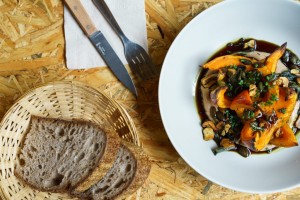 “ "...butter fried forest mushrooms she serves with roasted seeds and a pickled egg yolk or the roasted pumpkin with chestnut cream - simple and excruciatingly honest dishes."
