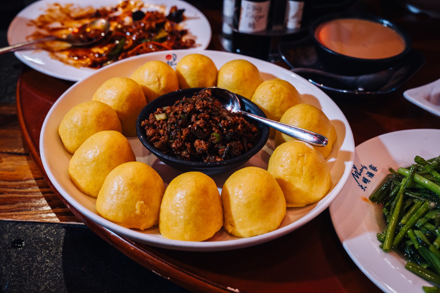 Steamed Corn Buns with Pickled Veg & Minced Meat