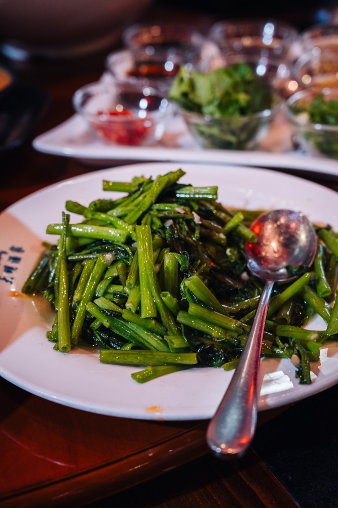 A wok-seared, garlicky green to balance the spice. Don’t skip your veggies.